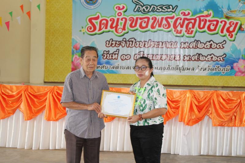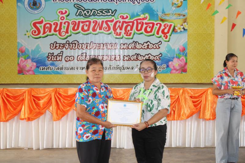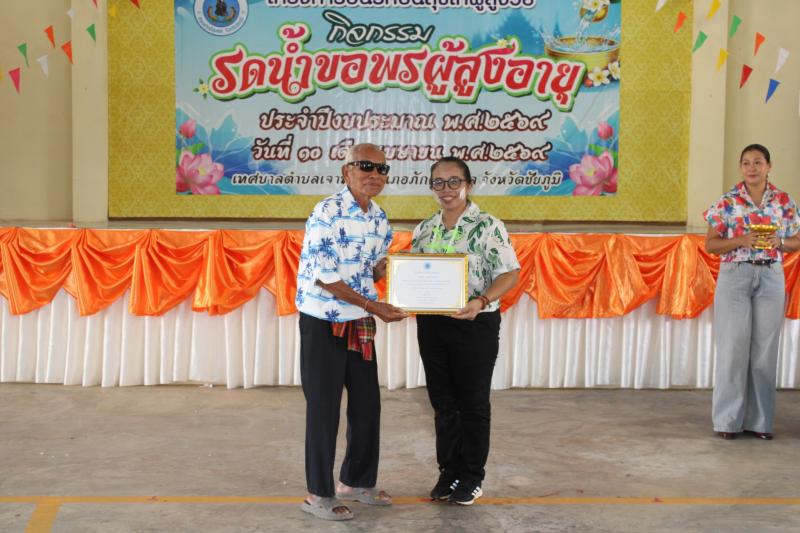 วันที่ 10 เมษายน 2569 เวลา 09.00 น. เทศบาลตำบลเจาทอง นำโดย จ.ส.ต.ฉัตรชัย อุธานี หัวหน้าสำนักปลัด รักษาราชการแทน ปลัดเทศบาลตำบล ปฏิบัติหน้าที่นายกเทศมนตรีตำบลเจาทอง พร้อมด้วยข้าราชการ พนักงาน ทต.เจาทอง ดำเนินงานโครงการปันสุขปันรักให้กับผู้สูงวัย “กิจกรรมรดน้ำขอพรผู้สูงอายุ” ประจำปีงบประมาณ 2569 โดยมีนางสาวอัจฉรา อาษาสู้ นายอำเภอภักดีชุมพล เป็นประธานเปิดโครงการฯ พร้อมด้วยหัวหน้าส่วนราชการ กำนัน ผู้ใหญ่บ้าน ณ หอประชุมอำเภอภักดีชุมพล จังหวัดชัยภูมิ
