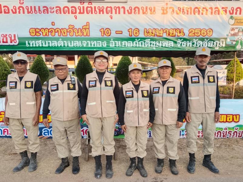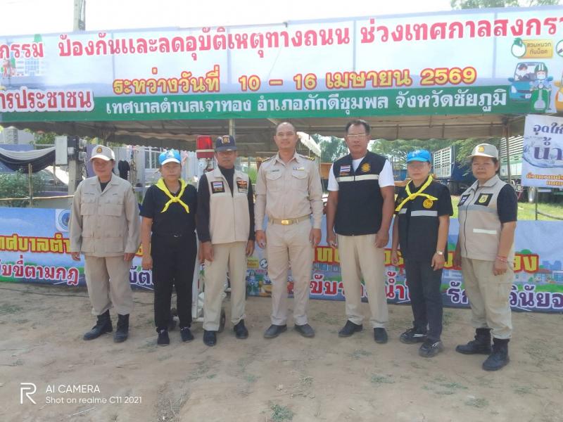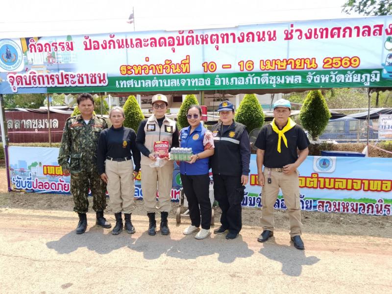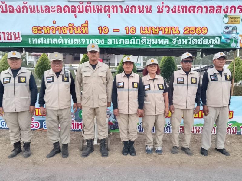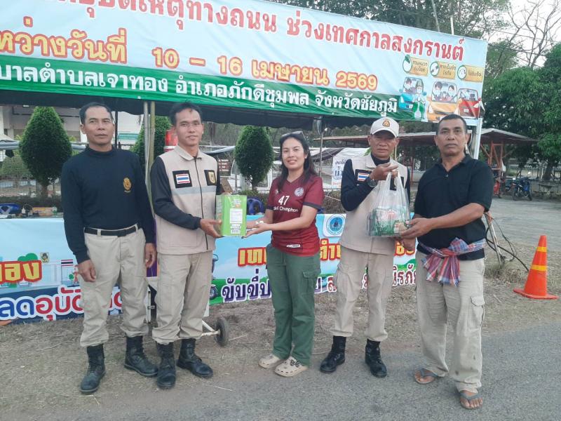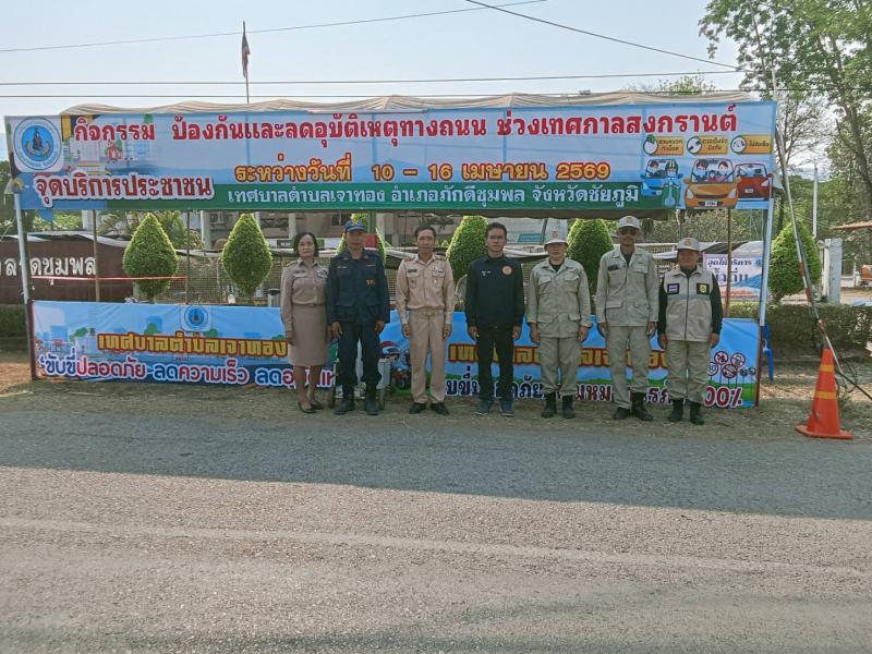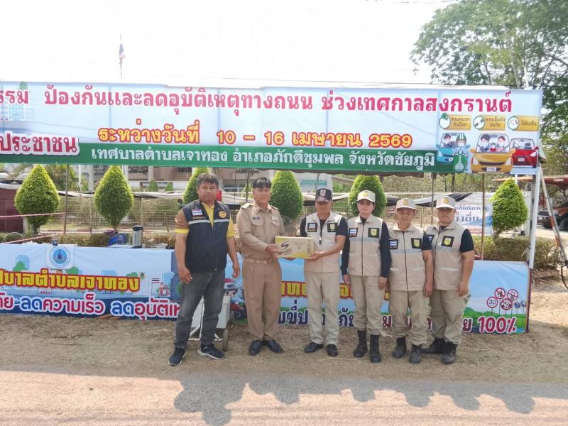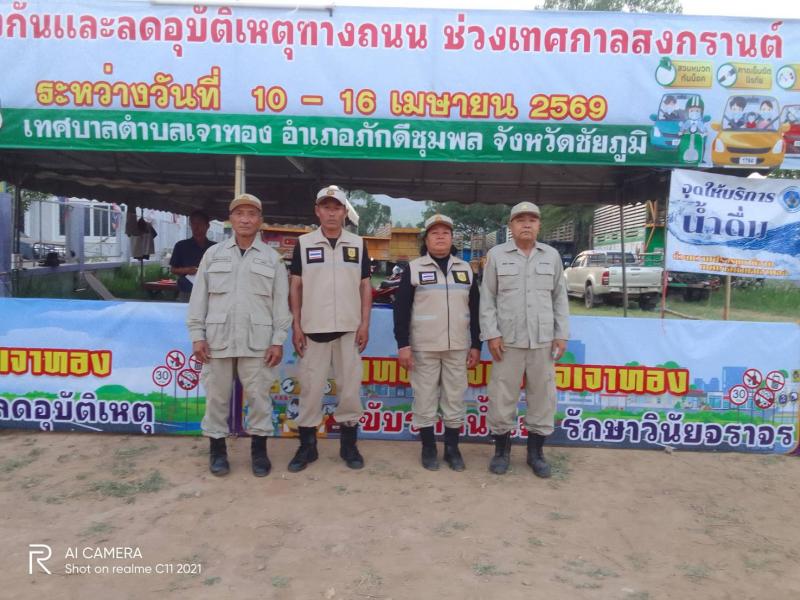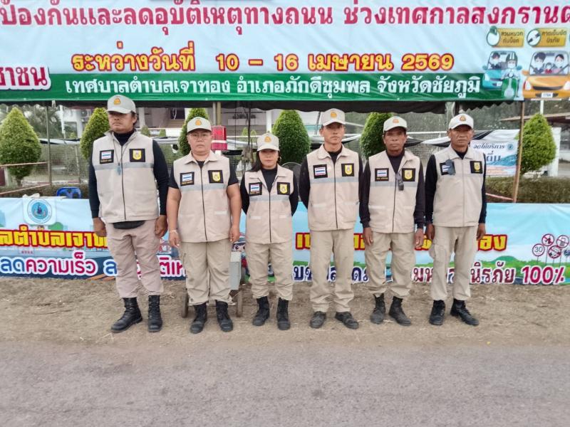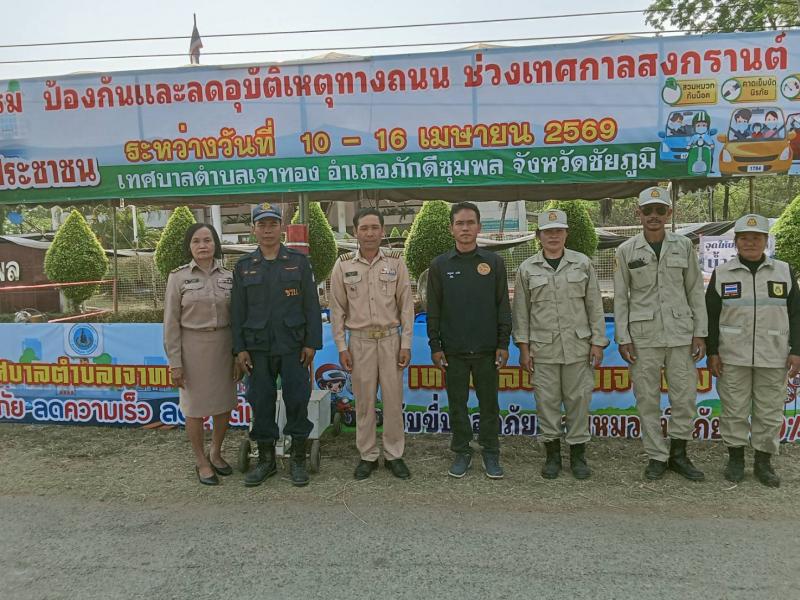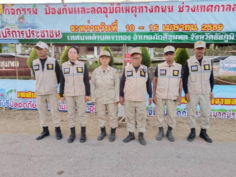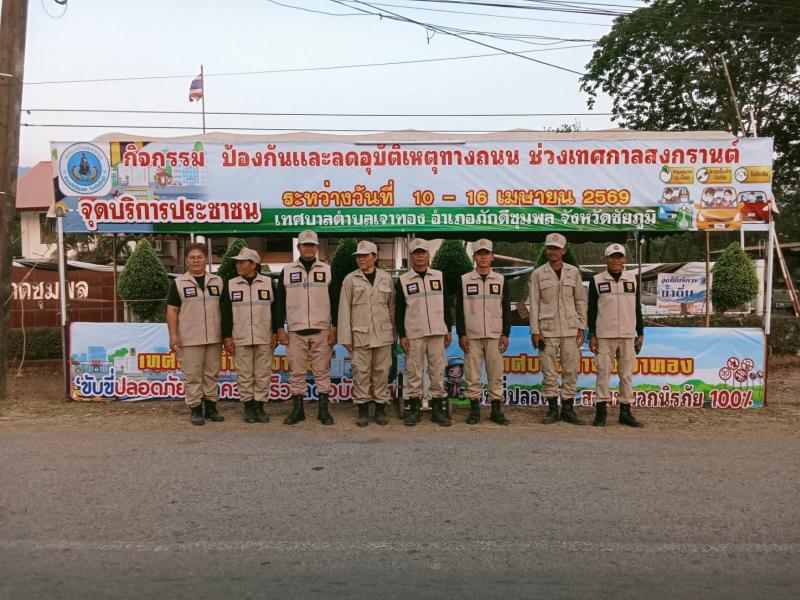 วันที่ 10 เมษายน 2569 เทศบาลตำบลเจาทอง นำโดย จ.ส.ต.ฉัตรชัย อุธานี หัวหน้าสำนักปลัด รักษาราชการแทน ปลัดเทศบาลตำบล ปฏิบัติหน้าที่นายกเทศมนตรีตำบลเจาทอง ผู้อำนวยการศูนย์ปฏิบัติการป้องกันและลดอุบัติเหตุทางถนน ทต.เจาทอง ดำเนินการป้องกันและลดอุบัติเหตุทางถนนช่วงเทศกาลสงกรานต์ ประจำปี 2569 (7 วันอันตราย) ระหว่างวันที่ 10-16 เมษายน 2569 เดินทางปลอดภัย ด้วยความใส่ใจคนภักดี พร้อมทั้งตั้งจุดบริการแก่ประชาชนและผู้สัญจร ทั้งนี้มีส่วนราชการ รัฐวิสาหกิจ กำนัน ผู้ใหญ่บ้าน ประชาชน มอบเครื่องดื่ม เป็นกำลังใจให้แก่เจ้าหน้าที่ประจำด่าน/จุดบริการประชาชนหน้าโรงพยาบาลส่งเสริมสุขภาพตำบลบ้านลาดชุมพลและประจำด่าน/จุดบริการประชาชนสี่แยกเจาทอง (หน้าการไฟฟ้าส่วนภูมิภาค สาขาย่อยอำเภอภักดีชุมพล)