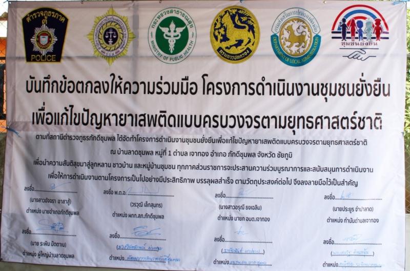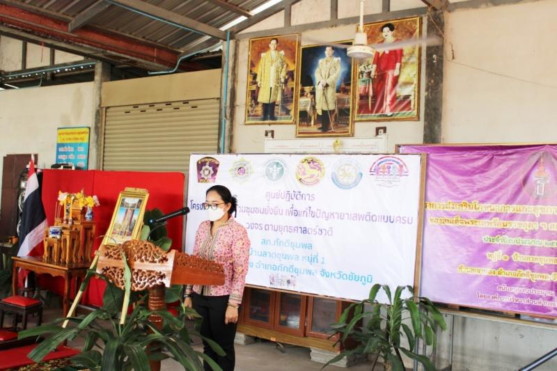 ร่วมพิธีเปิดโครงการชุมชนยั่งยืนเพื่อแก้ไขปัญหายาเสพติดแบบครบวงจร ตามยุทธศาสตร์ชาติ (ชุมชนยั่งยืน : บ้านลาดชุมพล หมู่ที่ 1 ตำบลเจาทอง อำเภอภักดีชุมพล จังหวัดชัยภูมิ)