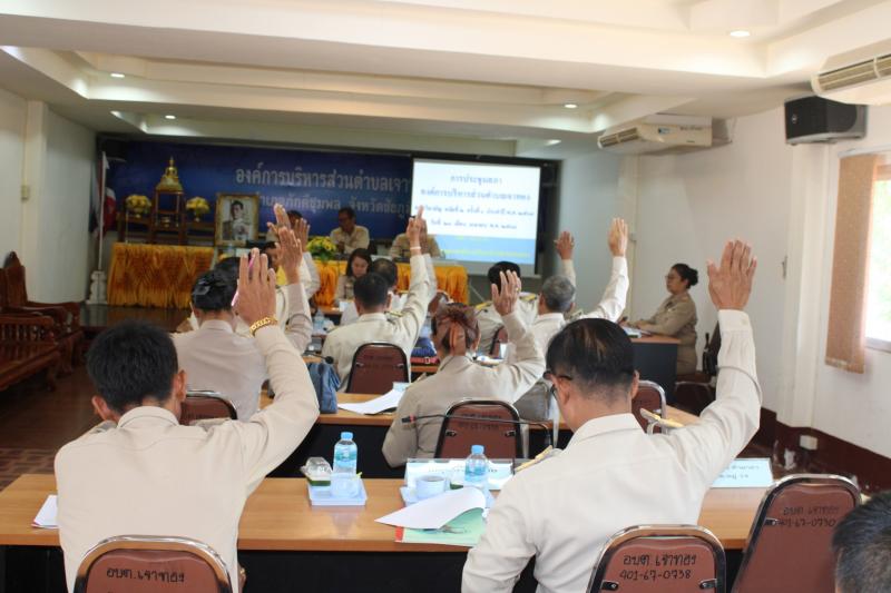 วันที่ 23 เมษายน 2568 เวลา 09.30 น. นายกวี ป้อจัตุรัส ประธานสภาฯ เปิดประชุมสภาสมัยสามัญวิสามัญ สมัย ที่ 2 ครั้งที่ 1 ประจำปี 2568 โดยมีนางสาวอรุณี ธงเฉลิม นายก อบต.เจาทอง พร้อมด้วยผู้ช่วยผู้บริหาร สมาชิกสภา อบต.เจาทอง นายประมินทร์ จันทะกาว เลขานุการสภาฯ เข้าร่วมประชุมเพื่อพิจารณาเห็นชอบการขอใช้พื้นที่ตาม พรบ.ป่าไม้ พ.ศ. 2484 โครงการปรับปรุงถนนหินคลุกบดอัดแน่นสายทางบ้านนาอุดม หมู่ที่ 6 ตำบลเจาทอง – บ้านนาระยะ หมู่ที่ 1 ตำบลวังทอง อำเภอภักดีชุมพล จังหวัดชัยภูมิ (องค์การบริหารส่วนจังหวัดชัยภูมิ) , พิจารณาเห็นชอบการขอใช้พื้นที่ตาม พรบ.ป่าไม้ พ.ศ. 2484 (กรณีก่อสร้างที่ว่าการอำเภอภักดีชุมพล , ศูนย์ราชการและบ้านพักข้าราชการประจำอำเภอภักดีชุมพล) จำนวน 105 ไร่ ,การแก้ไขเปลี่ยนแปลงคำชี้แจงงบประมาณรายจ่าย ประจำปีงบประมาณ พ.ศ. 2568 ก่อสร้างท่อขยายเขตระบบประปา บ้านซับประสิทธิ์ หมูที่ 7 , การแก้ไขเปลี่ยนแปลงคำชี้แจงโครงการจ่ายขาดเงินสะสม หมู่ที่ 14 บ้านลาดไทรทอง และข้อราชการอื่น ๆ ณ ห้องประชุมสภาองค์การบริหารส่วนตำบลเจาทอง