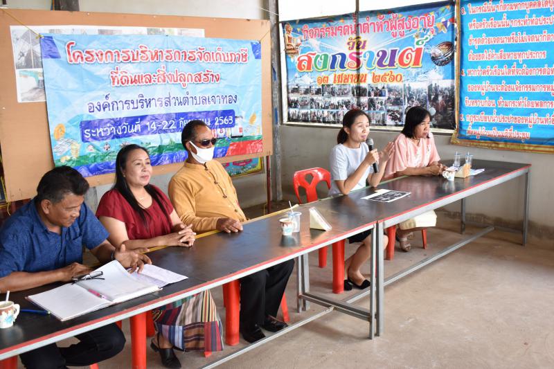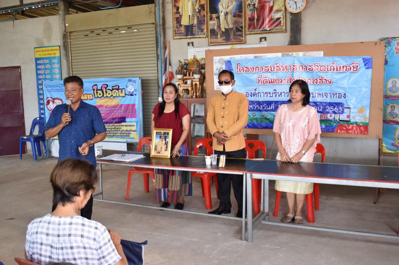 วันที่ 15 กันยายน 2563 องค์การบริหารส่วนตำบลเจาทอง นำโดยนางสาวอรุณี ธงเฉลิม นายกองค์การบริหารส่วนตำบลเจาทอง มอบหมายนายกวี ป้อจัตุรัส รองนายกองค์การบริหารส่วนตำบลเจาทอง พร้อมด้วยนางสาวชลลดา กุดแก้ว ปลัด อบต.เจาทอง นางสาวฐานมญ สุนทรห้าว ผู้อำนวยการกองคลัง ส.อ.ทนงศักดิ์ จรแก้ว เจ้าพนักงานจัดเจ็บรายได้ปฏิบัติงาน ออกให้บริการตามโครงการบริหารการจัดเก็บภาษีที่ดินและสิ่งปลูกสร้าง ร่วมเป็นวิทยากรให้ความรู้ ระหว่างวันที่ 14 -22 กันยาน 2563 ณ ศาลา SML บ้านลาดชุมพล ม.1 ตำบลเจาทอง