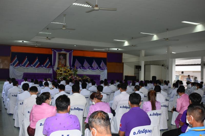 วันที่ 3 มิถุนายน 2565 เวลา 17.30 น. องค์การบริหารส่วนตำบลเจาทอง นำโดยนางสาวอรุณี ธงเฉลิม นายกองค์การบริหารส่วนตำบลเจาทอง พร้อมด้วยนายเส็ง พิผ่วนนอก รองนายก อบต.เจาทอง สมาชิกสภาฯ ข้าราชการ ร่วมพิธีถวายเครื่องราชสักการะและวางพานพุ่ม และพิธีถวายพระพรชัยมงคลเฉลิมพระเกียรติสมเด็จพระนางเจ้าสุทิดา พัชรสุธาพิมลลักษณ พระบรมราชินี เนื่องในโอกาสวันเฉลิมพระชนมพรรษา 3 มิถุนายน 2565 โดยมีนางสาวอัจฉรา อาษาสู้ นายอำเภอภักดีชุมพล เป็นประธานในพิธี พร้อมด้วยหัวหน้าส่วนราชการ กำนัน ผู้ใหญ่บ้าน และปฏิบัติตามมาตรการ 5+1 (D-M-H-T-T-A) อย่างเคร่งครัด ณ หอประชุมที่ว่าการอำเภอภักดีชุมพล