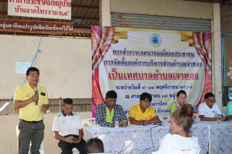 กิจกรรมการสำรวจเจตนารมณ์ของประชาชนการจัดตั้งองค์การบริหารส่วนตำบลเจาทอง เป็นเทศบาลตำบลเจาทอง บ้านลาดไทรงาม หมู่ที่ 14
