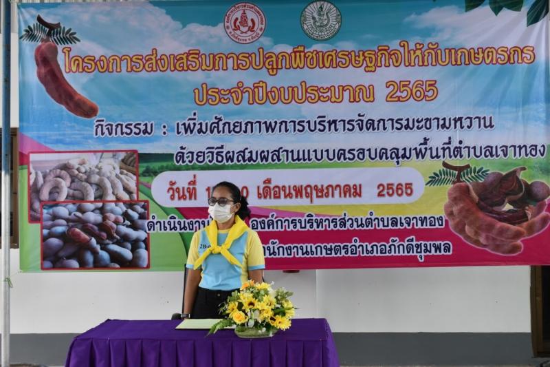 โครงการส่งเสริมการปลูกพืชเศรษฐกิจให้กับเกษตรกร ประจำปีงบประมาณ 2565 กิจกรรม : เพิ่มศักยภาพการบริหารจัดการมะขามหวานด้วยวิธีผสมผสานแบบครอบคลุมพื้นที่ตำบลเจาทอง
