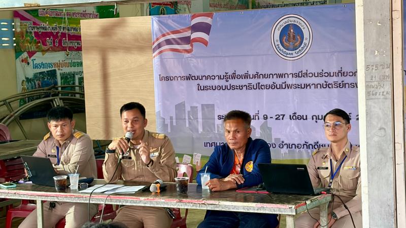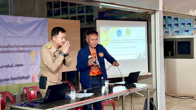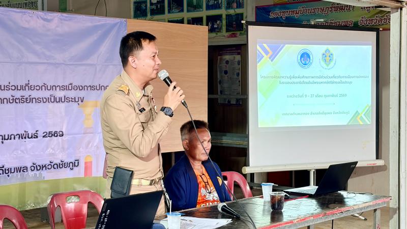 วันที่ 9 กุมภาพันธ์ 2569 เวลา 16.00 น. เทศบาลตำบลเจาทอง นำโดย จ.ส.ต.ฉัตรชัย อุธานี หัวหน้าสำนักปลัด รักษาราชการแทน ปลัดเทศบาลตำบล ปฏิบัติหน้าที่นายกเทศมนตรีตำบลเจาทอง พร้อมด้วยข้าราชการ พนักงานเทศบาลตำบลเจาทอง ดำเนินโครงการพัฒนาความรู้เพื่อเพิ่มศักยภาพการมีส่วนร่วมทางการเมืองในระบอบประชาธิปไตยอันมีพระมหากษัตริย์ทรงเป็นประมุข การประชาสัมพันธ์ข้อมูลและความรู้ด้านกฎหมาย หน้าที่ของประชาชนเกี่ยวกับการเลือกตั้งสมาชิกสภาเทศบาลและนายกเทศมนตรี ระหว่างวันที่ 9-27 กุมภาพันธ์ 2569 ณ ศาลาประชาคมบ้านราษฎร์พัฒนา หมู่ที่ 10 ตำบลเจาทอง อำเภอภักดีชุมพล จังหวัดชัยภูมิ