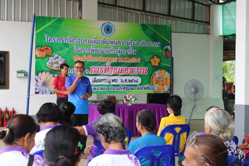วันที่ 1 กรกฎาคม 2568 เวลา 09.30 น. องค์การบริหารส่วนตำบลเจาทอง นำโดยนางสาวอรุณี ธงเฉลิม นายกองค์การบริหารส่วนตำบลเจาทอง มอบหมายนายศิวะ สุทธิพันธุ์ รองนายกองค์การบริหารส่วนตำบลเจาทอง ประธานเปิดโครงการฝึกอบรมเพื่อเพิ่มพูนความรู้และศักยภาพในการพัฒนาแก่กลุ่มอาชีพ กิจกรรมที่ 1 การทำขนมหวานประจำปีงบประมาณ 2568 ณ อาคารป้องกันฯ อบต.เจาทอง