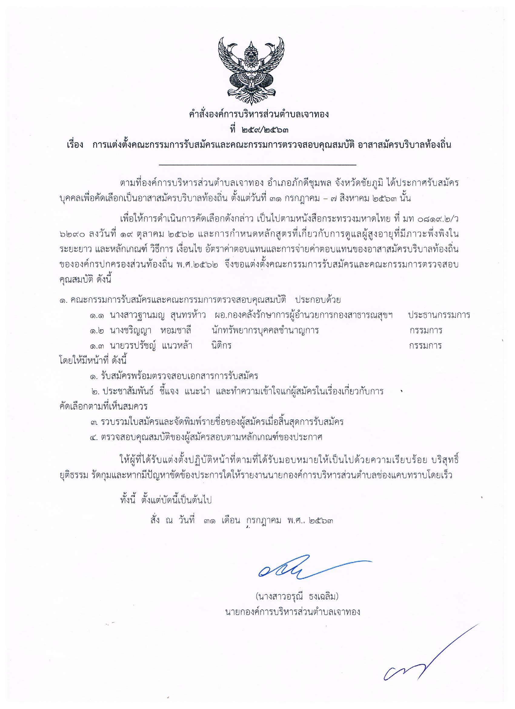 คำสั่งองค์การบริหารส่วนตำบลเจาทอง ที่ 259/2563