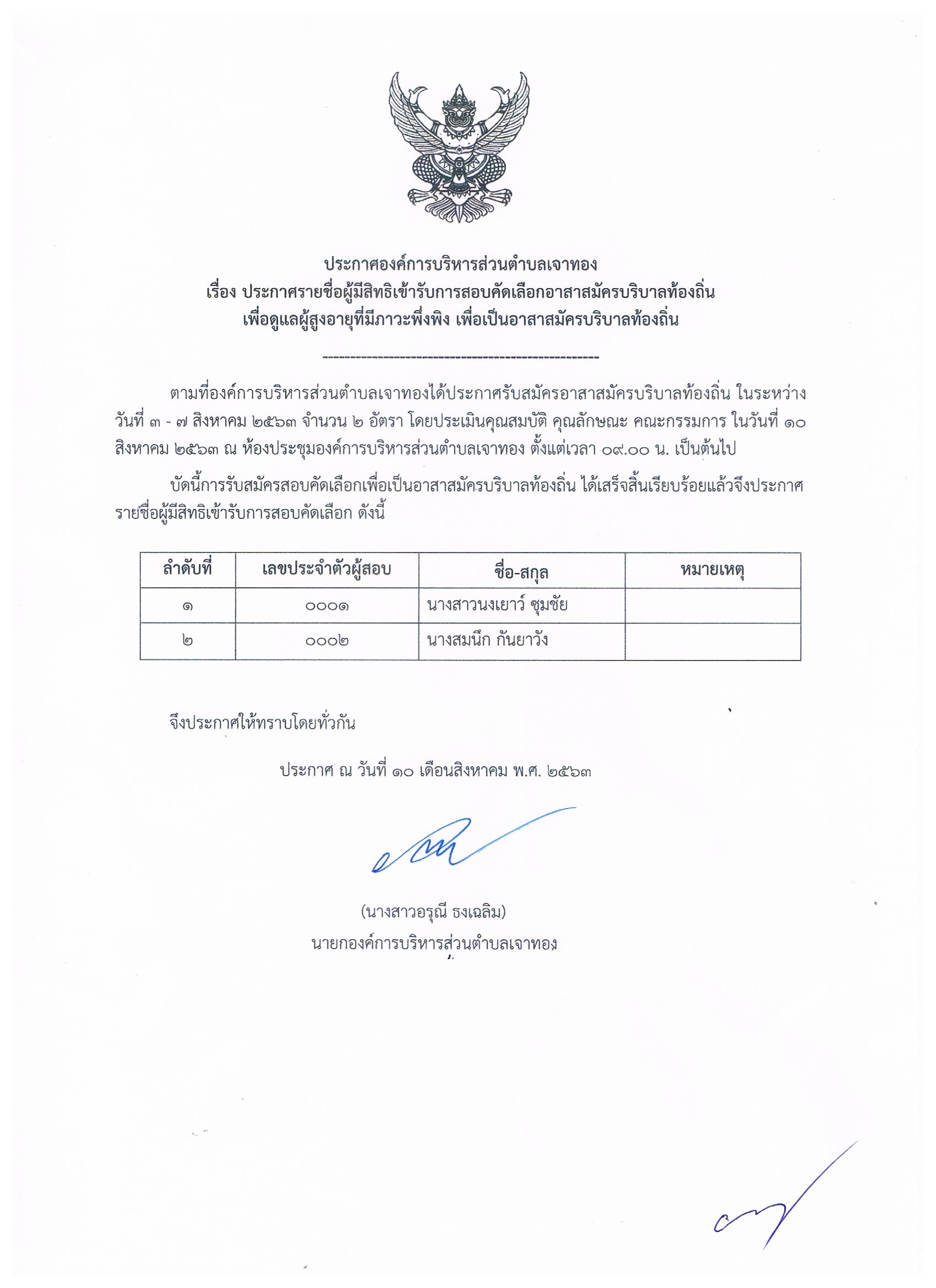 ประกาศองค์การบริหารส่วนตำบลเจาทอง